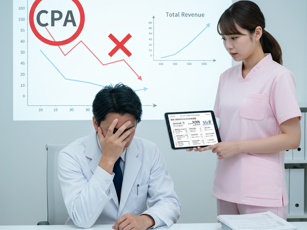 多くのクリニックが、大手の広告代理店や制作会社に運用を任せています。しかし、「広告費はかけているのに、問い合わせが増えない」「来院しても単発の安価な施術で終わってしまう」という状況が続いているなら、それはマーケティングの「型」が、今の貴院のフェーズに合っていない可能性があります。