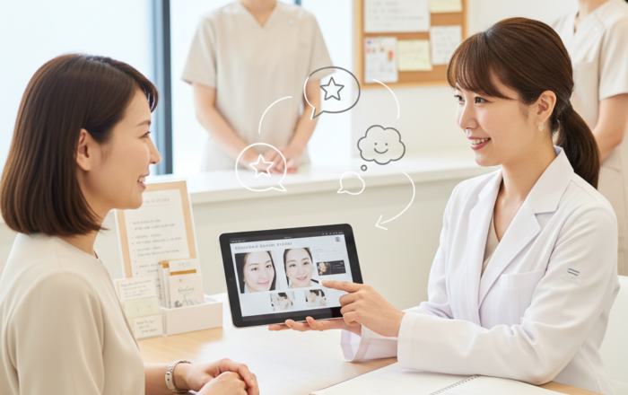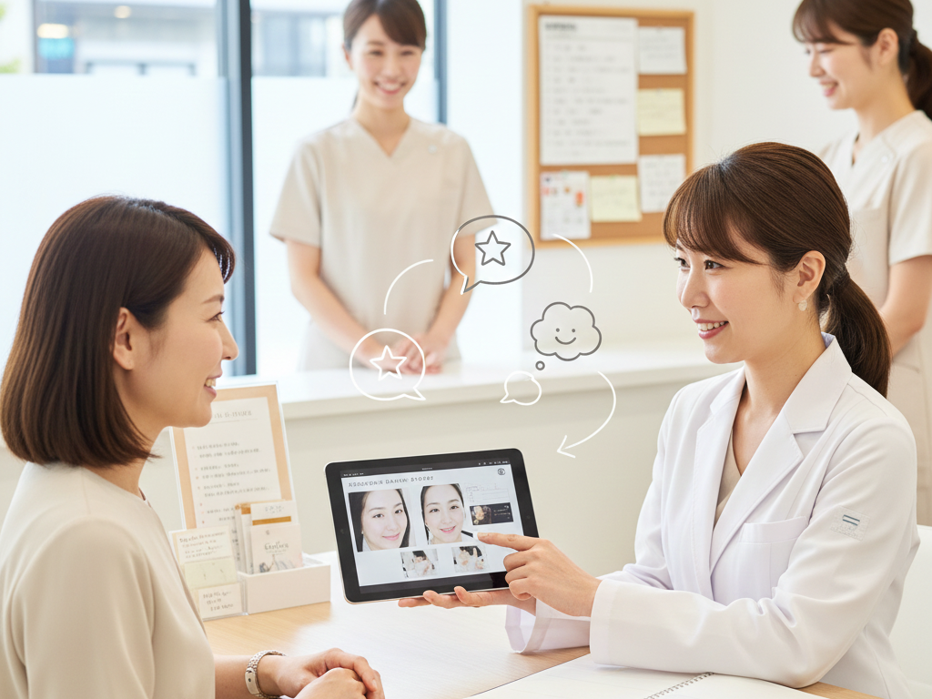 「ビフォーアフター」の言語化: 患者様が誰かに話す際、「なんだか良くなった」ではなく「〇〇という悩みが、あそこの先生のおかげでこう解決した」と具体的に話せるよう、カウンセリングで言葉を添えてあげることが重要です。