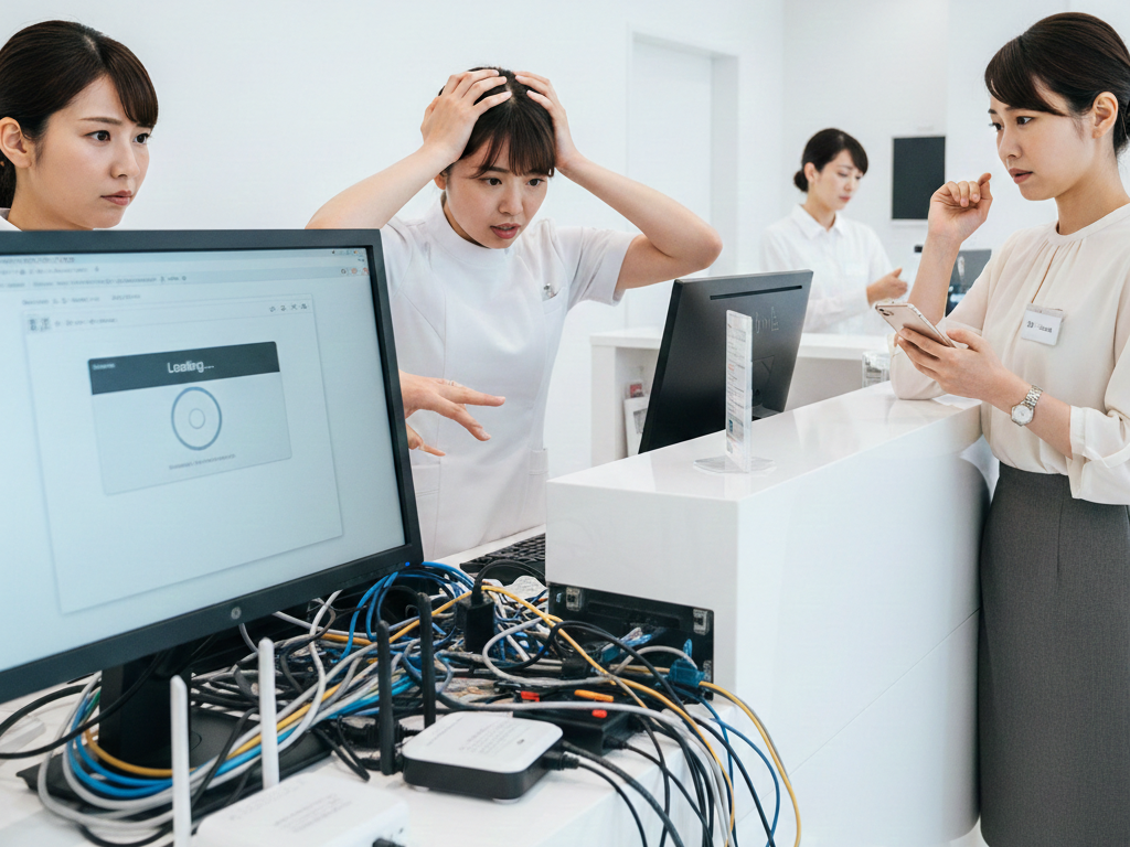 しかし、いざ開院してみると「電子カルテの動きが重い」「写真のアップロードに時間がかかる」「Wi-Fiが頻繁に切れる」といったトラブルに悩まされるケースが後を絶ちません。デジタル化が進んだ現代のクリニックにおいて、ネットワークの停止は「診療の停止」に直結します。