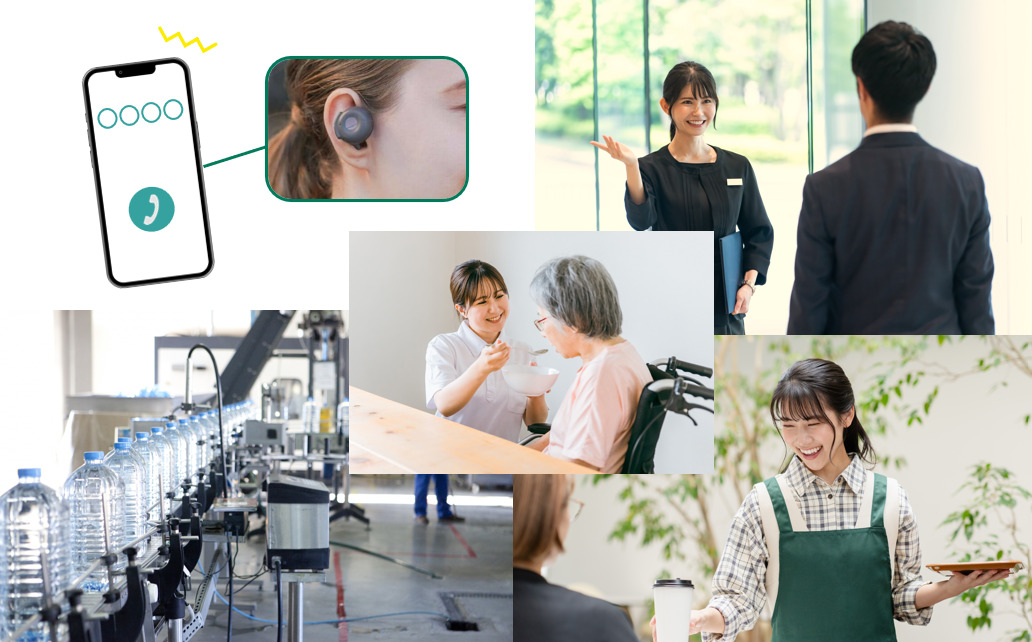 Wi-Fi環境や携帯電話の通信網を利用して通話・メッセージ送信が可能なため、ホテル、工場、病院、福祉施設、商業施設など、さまざまな現場で柔軟に活躍します。また、普段使い慣れたスマホをそのまま業務に活用できるため、導入後すぐに業務に組み込みやすい点もメリットです。