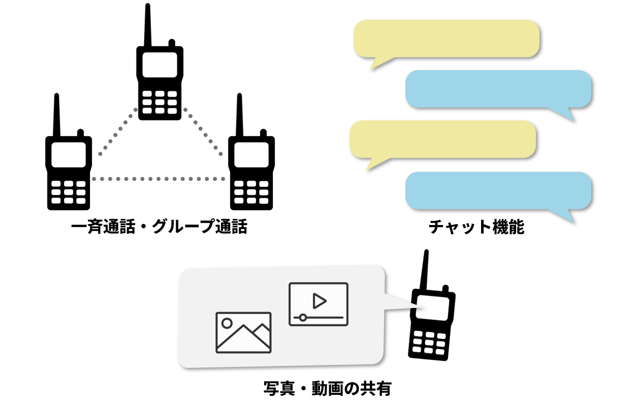「業務用無線機とスマホを両方持ち歩くのは面倒…」といった悩みを解消し、スマホ一台で無線機と同等の機能を使える点が大きな特徴です。