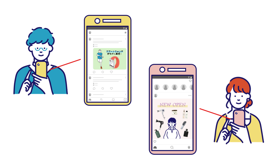 SNS広告では、「東京に住む20代の女性」といったように、地域・年齢・性別など細かくターゲットを設定して広告を配信できます。