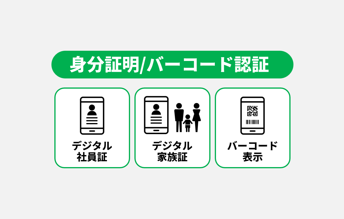 顔写真付きの身分証をスマホアプリ上に表示することで、社員証や入館証をはじめとした各種証明をデジタル化します。