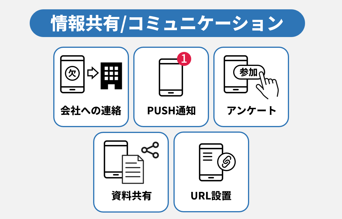 さらに、従業員から会社への欠勤・遅刻などの連絡もアプリ上で手軽に行えるため、日々のやり取りもスムーズになります。
