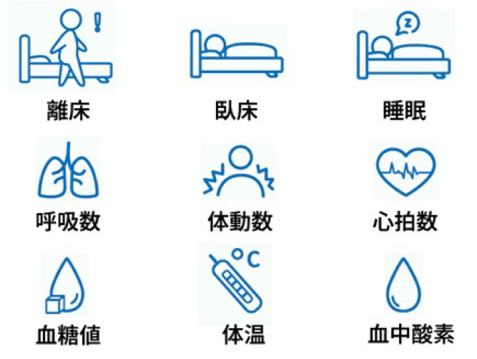 心拍数や呼吸数を測定して分析することで、異常事態や注意事項をお知らせします。