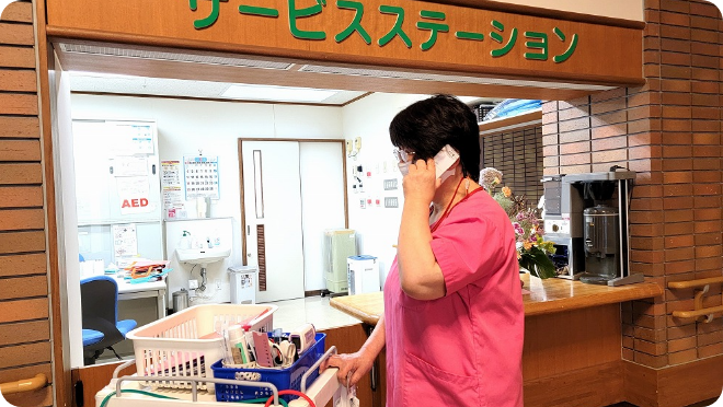 インカムも連携することで、情報共有や応援要請もスピーディーになり、都度スタッフステーションに戻る必要がなくなります。